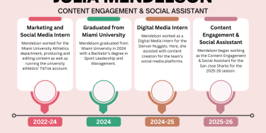 For this assignment, I logged into my LinkedIn account and looked up my sports penpal, Julia Mendelson. After looking through her profile and gathering a good idea of the jobs she’s had and the work she’s done, I reached out through email to follow up and provide details about the second part of this assignment. …