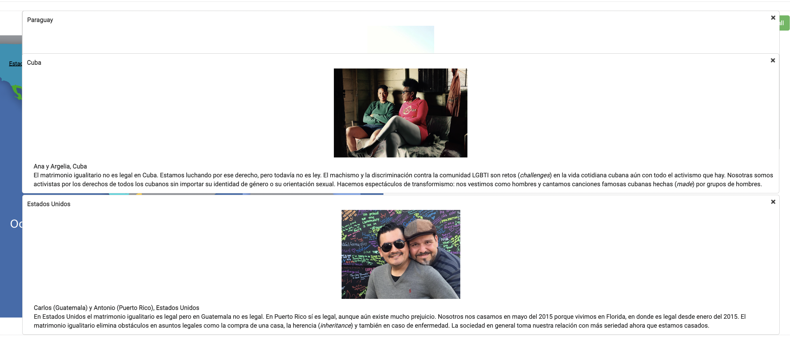 This semester we were granted two opportunities to speak with fluent Spanish speaking individuals over video call. During the discussions we would introduce ourselves to our speaking partner, asking and responding to questions regarding our personal basic information. Conversations were 15 minutes in length, consistent with course material presented this semester.
