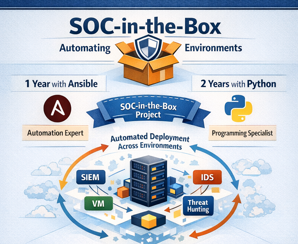 One year of Automation work with Ansible and two years of Python. Helping create a project called SOC-in-the-box, where my team leveraged Ansible to automate the deployment of tools across different environments, allowing students and professionals to practice their skills. In a safe and reliable environment.