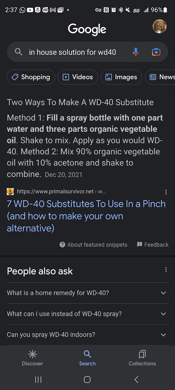 Funny enough once I made it I had made the mixture a dorm mate of mine came by and delivered proper WD-40