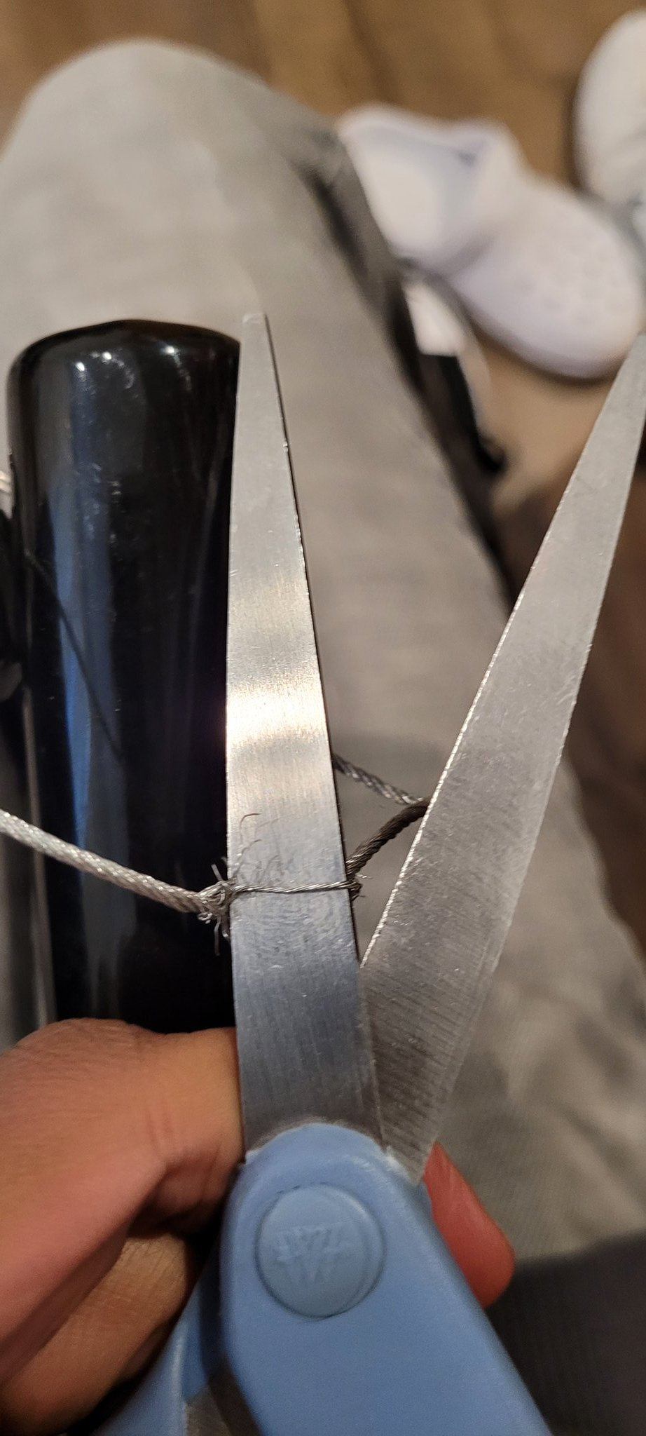 After getting the bike lock I then had to struggle for my life because for some reason the lock’s keys it was wrapped with silver wire. These wires can be cut easily if you have a wire cutter. I, however, do not have a wire cutter and nobody around me had one as well. I thought my regular scissors would do the trick but it only ended up dulling the blade. But I wasn’t done I went back to my apartment to try and find every sharp pair of cutting equipment that I own. It ended with several casualties.