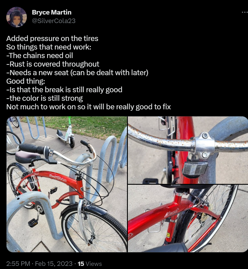 I tweeted about my process of trying to fix my newly given bike. And for those who think this isn’t a sports-related persona.