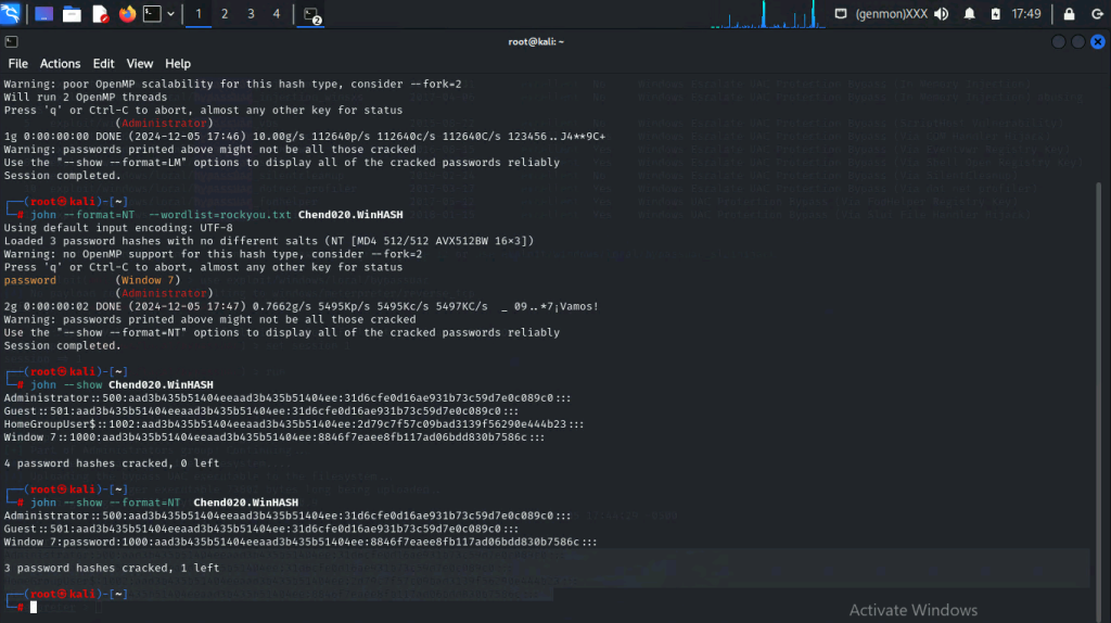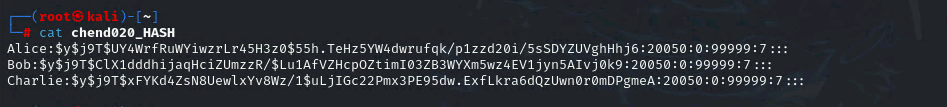 2. 10 points. Save the password hashes into a file named “your_midas.WinHASH” in Kali Linux