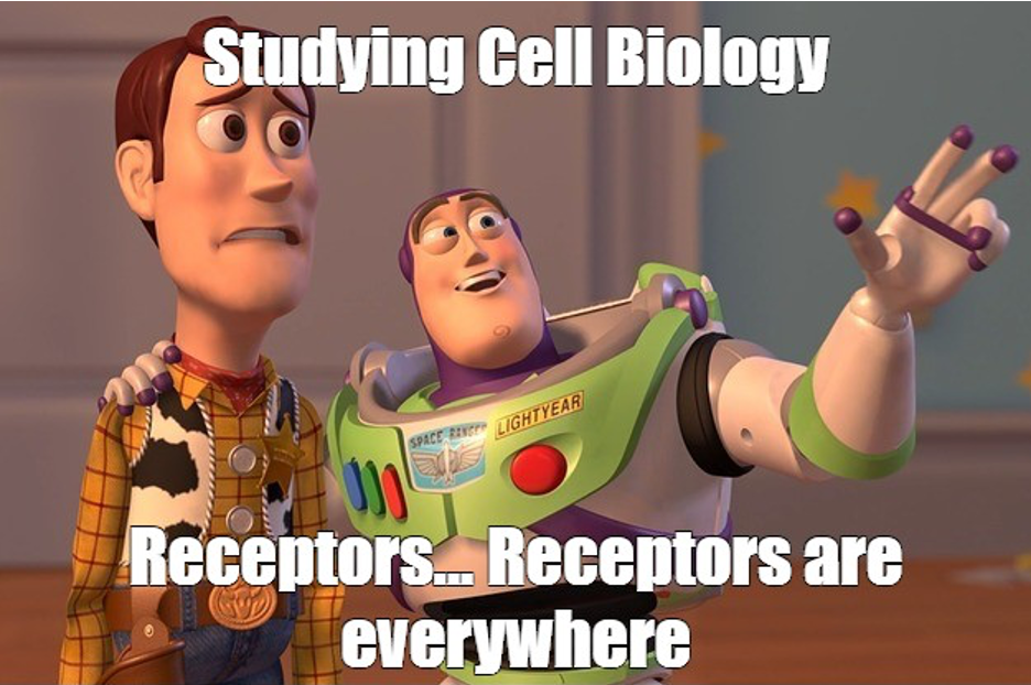 I instantly chose this meme when attempting this assignment. Cell biology is obviously the study of the cell and its function, structure, and behavior. Throughout the semester I can say that understanding the cell was much more complicated than I was expecting. From mitosis (cell growth) to the entrance of an infection, cell receptors are proteins that are either inside or on the surface of the cell in which is it receives a signal and allows change activity of the cell. There have been many instances throughout the semester in which diagrams and pictures were projected to demonstrate the proteins and receptors responsibilities during certain cell biology processes. At times it can get challenging trying to remember the different types of receptors and what their significance is to the cell. Overall, receptors and proteins play a very important role when it comes to activity that may be trying to enter and exit the cell.