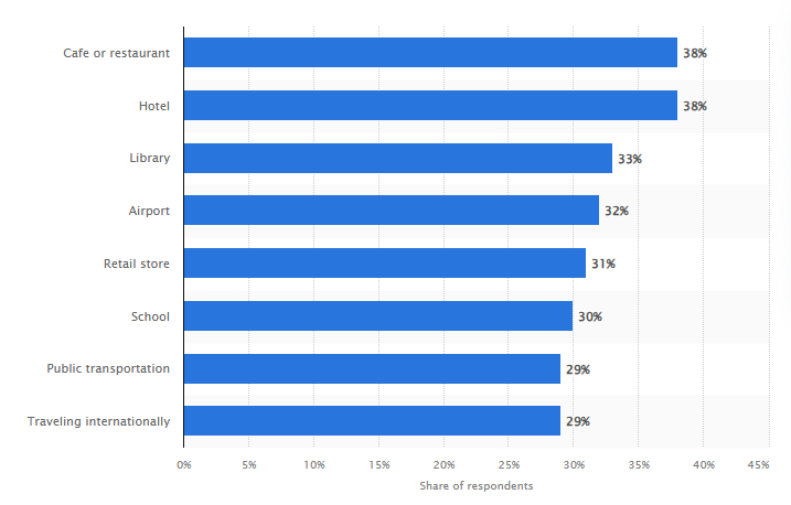 While looking into the prevalence of wireless attacks I came across an eye opening statistic. According to Statista, 40% of surveyed adults said they “encountered private data compromise as a result of using public Wi-Fi in a café or restaurant” (Statista, 2025). It turns out there are many other places where folks experience this too when using public Wi-Fi