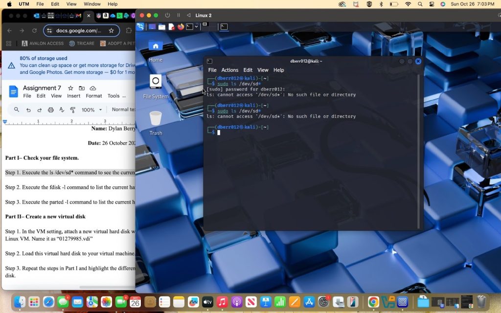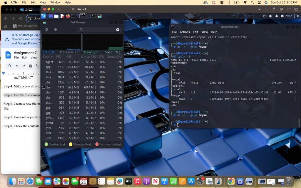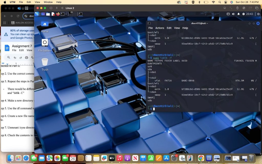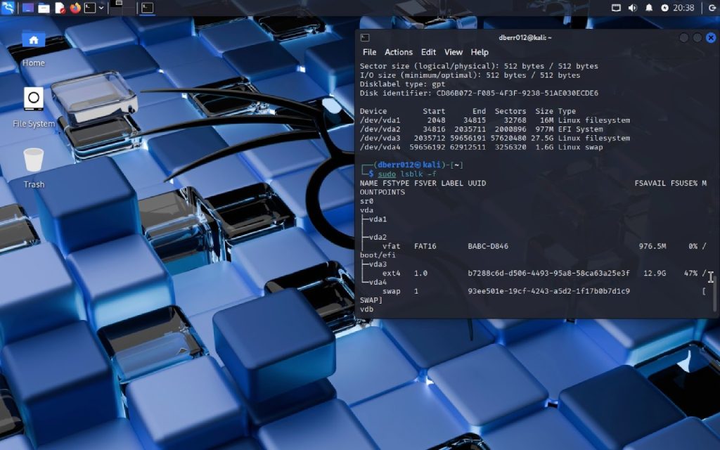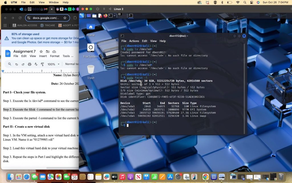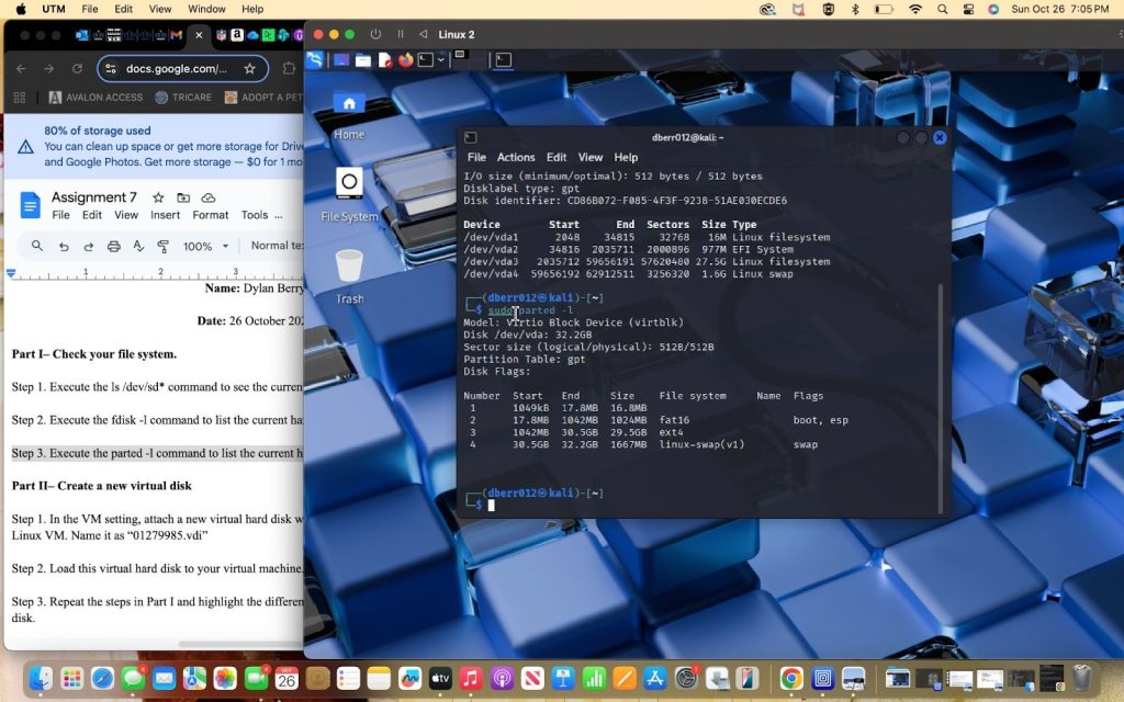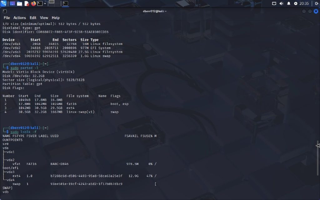 - From the three checks from part 1, the three things that have changed were in the devices listing, the partition listing, and the partition table summary