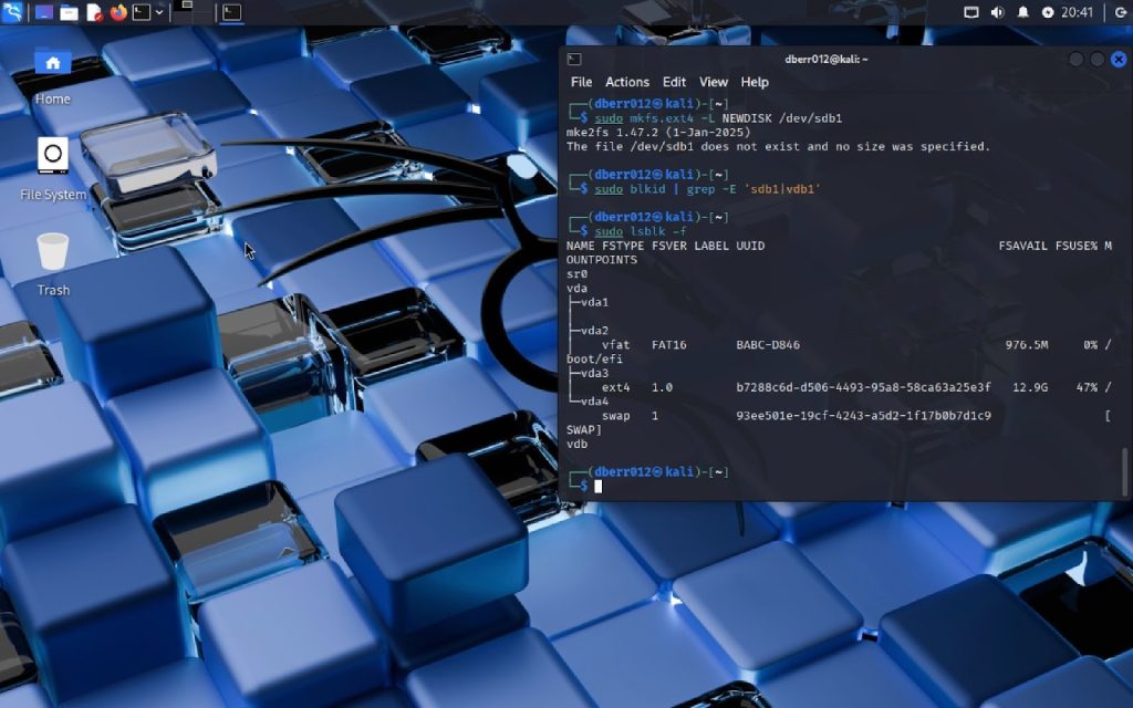 Step 2. Use the correct command to create an ext4 filesystem on the new partition.