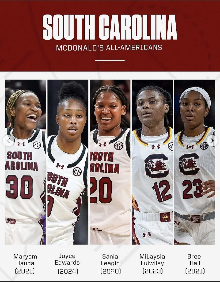 Her current key reserves off the bench consist of sophomores MiLaysia Fulwiley and Tessa Johnson and freshman Joyce Edwards. These three help provide the Gamecocks with an average of 40.5 points off the bench, the highest bench points per game in the NCAA this season. These players could go anywhere, start, and play more than 20-something minutes a game. But they trust the process of Coach Staley and know their time will come.