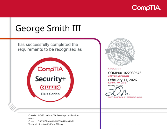 Completed and passed the CompTIA Security+ exam.