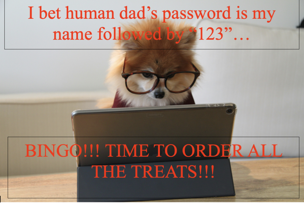 Finally, we have a cute picture of a dog posed behind a tablet. In this meme, I am drawing parallels between the adorable pup in glasses and legitimate hackers to point out the importance of password security and the need for multi-factor authentication or other more robust measures to ensure access is limited to those authorized to access a network. Although the thought of a dog ordering treats with its human’s credit card is light humor, the threat of hackers accessing networks or sites through use of weak passwords is very serious. We are all prone to take the path of least resistance. Password security is no exception. Remembering complex passwords for multiple networks, sites, or applications is a daunting task for anyone. People tend to prefer easy to remember passwords which make it much simpler for hackers to gain access with dictionary or brute-force attacks.