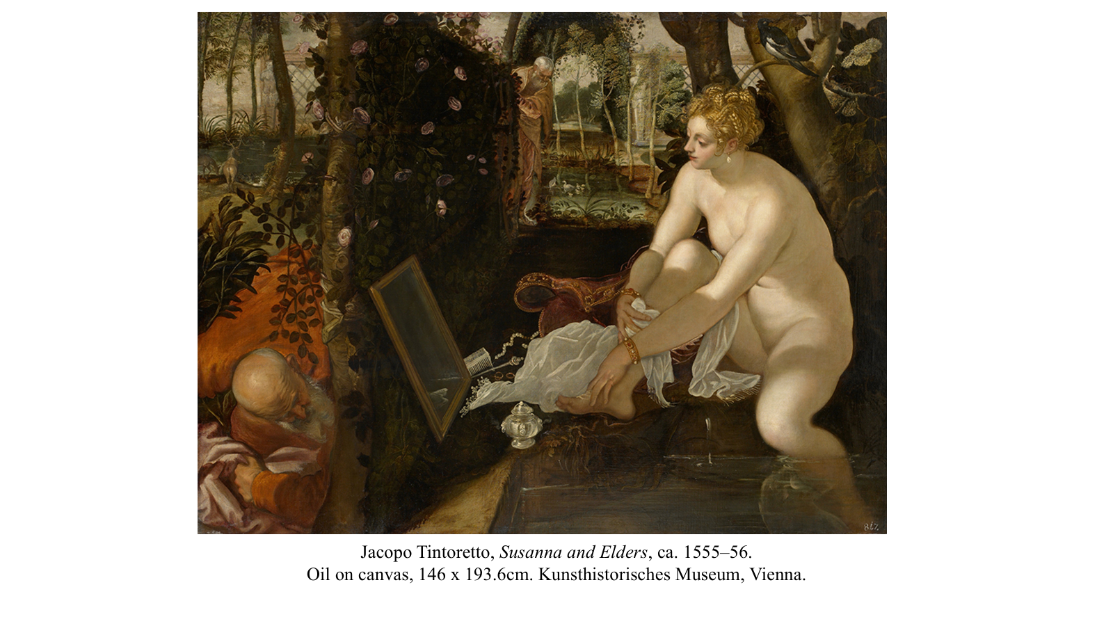 8. David Rosand develops this parallel, arguing that Tintoretto constructs a visual trap in which the viewer becomes entangled in the same dynamics of desire, reflection, and moral uncertainty that structure both scenes.