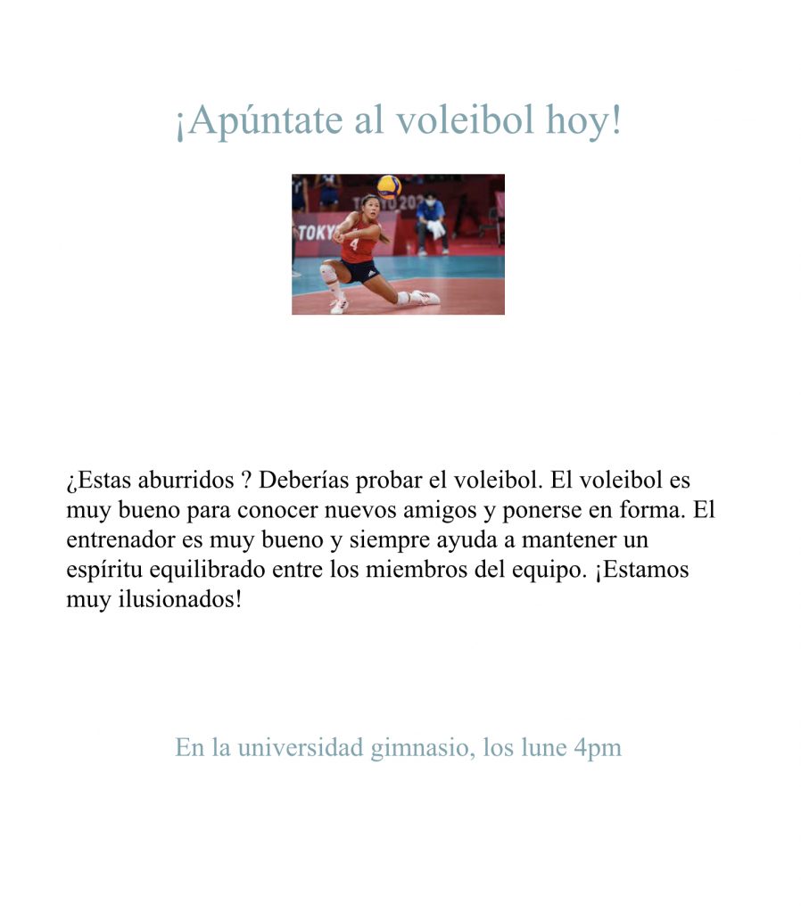 I definitely think my writing has improved with all of these writing assignments I have done. When I made a flyer for volleyball I think my Spanish writing was very good and when I did a flyer for the flu I really like the pictures I chose.