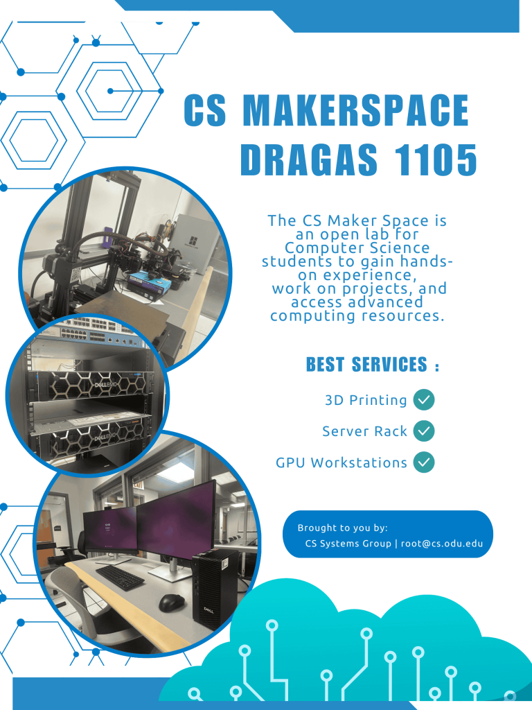 My internship with Old Dominion University’s Computer Science CS Systems allowed me to apply my art and graphic design skills to support outreach for one of our open-source student labs. I created materials that explained the lab’s purpose, how to access it, and the services our team provides.