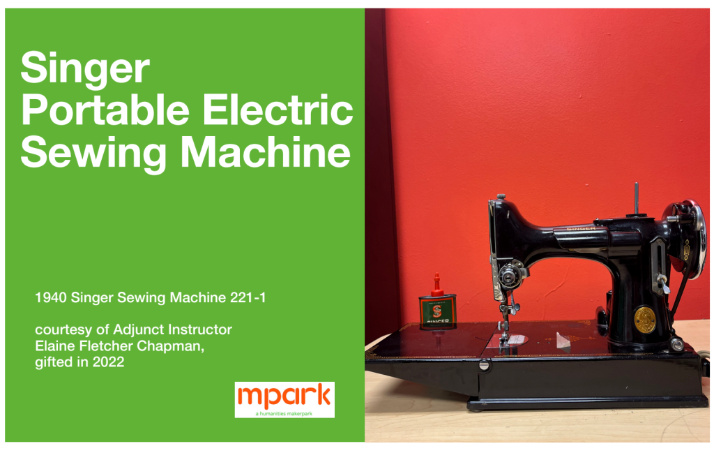 mpark houses two mid-20th-century sewing machines—a 1940 Singer 221-1 and a 1950s Brother model with zigzag stitching capabilities. These machines support textile repair, soft prototyping, and craft-based experimentation, connecting traditional craftsmanship with contemporary making practices.