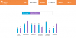 For this activity I learned about the difference in values based on individualist vs. collectivist cultures. I chose to contrast the United States and Germany because most of my ancestral roots are in Germany but I do not know a lot about the culture. Because they are European, I was not surprised to learn that most of the values are similar compared to the United States. I was surprised to see the vast difference in long term orientation. From the site it says that Americans are focused on more short-term results while Germans have the discipline to plan and save for the future. I included an image of the comparison between the countries below.