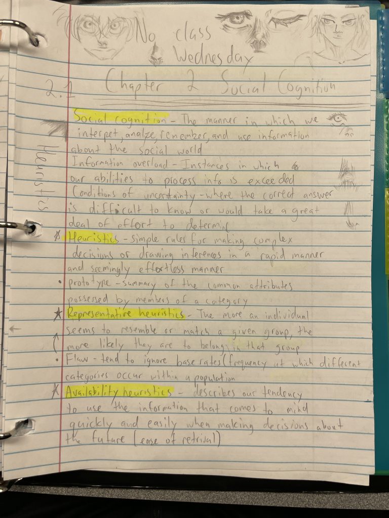 Above is a picture of my Chapter 2 notes. The way I do notes is writing down the summaries for each objectives of the chapter and then once I read through I highlight important terms.
