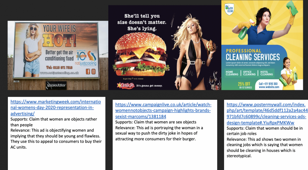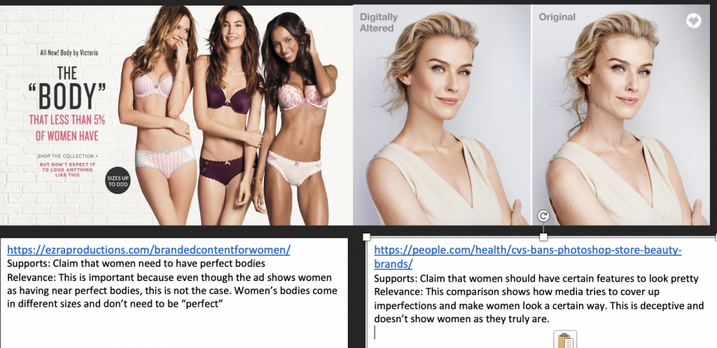 This Ted Talk was very revealing. It really makes you think about all the subliminal messages we can receive through ads. Before this video I have seen many examples of ads stereotyping women. An example would be ads that show women in the kitchen or doing cleaning roles. I have also seen ads dehumanizing women by showing them in sexual positions. This video opened my eyes to the fact that although men’s image can be distorted using ads as well, it becomes more of a problem for women. Women are sexualized using their bodies more than men and when men are sexualized it is usually less personal. Probably the most shocking part of the video is the section that pointed out ads that show younger girls in revealing clothing.