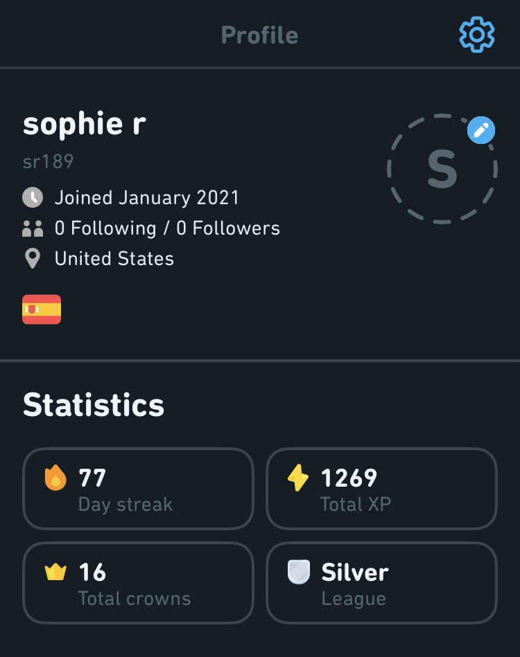 I practice my Spanish speaking, writing, and comprehension skills every day on Duolingo. This gives me daily exposure to Spanish and gives me consistent opportunity to learn and improve my understanding of the language and how to properly communicate.