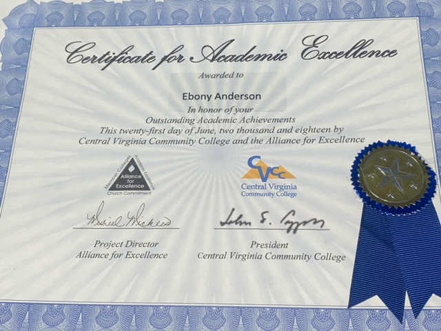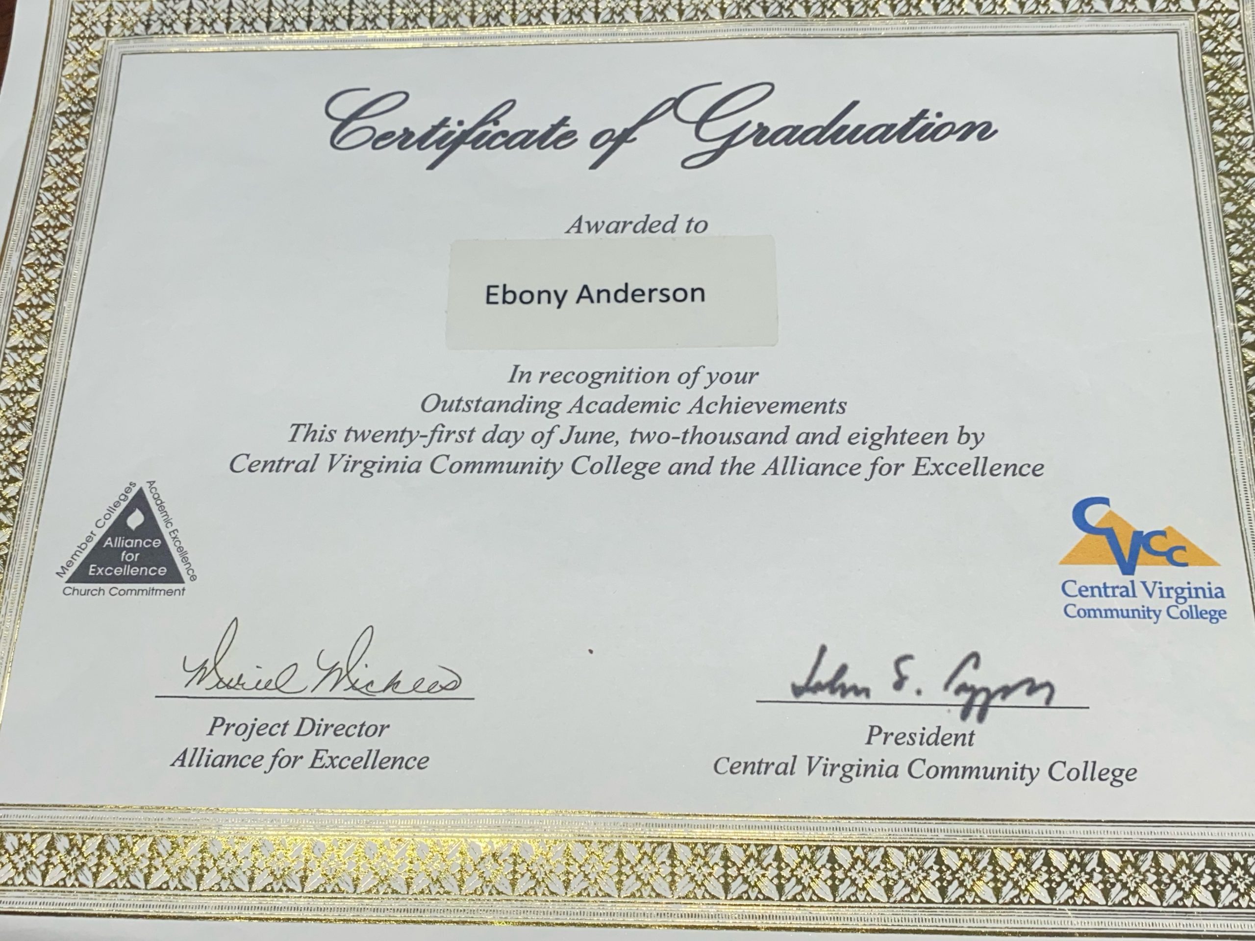 Pictured above: Recognition for my academic accomplishments as a student at CVCC. These are of importance to me because it was my first time ever as a college student and I was able to maintain good grades despite life challenges that were presented.