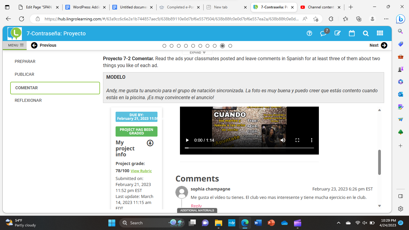 I think commenting and receiving comments from my classmates was a great way to get feedback on my projects and communicate with the little community that is my spanish class. I engaged with my community through commenting on from my classmates on my Linerolearning projects.