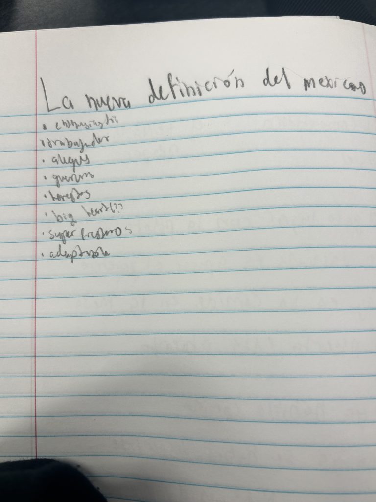 In class and in pairs, we answered these questions about stereotypes of Mexicans. We learned about stereotypes across generations and our personal perspectives on stereotypes.