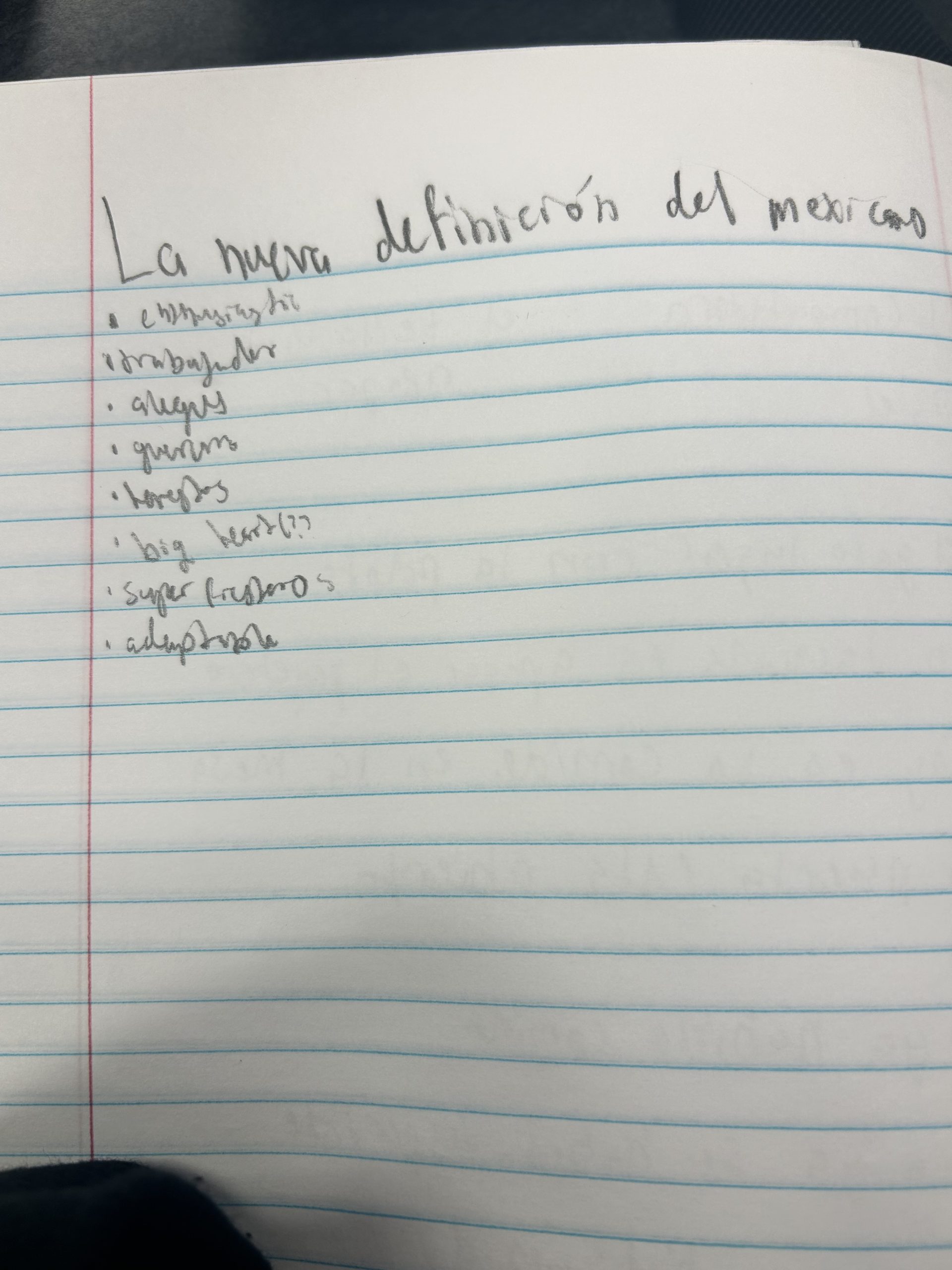 In class, we listened to a video of Mexican people describing themselves in regard to their heritage. Then we had to make a list of all the adjectives they used to talk about themselves.