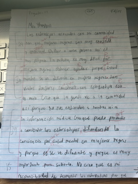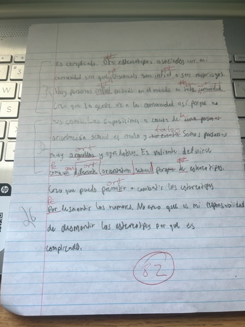 This class was a lot different than my other Spanish classes. In my past classes, we had to write the rough draft at home and then we would turn them in and get corrections. In this class, we write our rough drafts in class instead of turning them into Contresena. This was a challenge for me because at home I can study my notes and look things up when I need to but I think this class helped grow my writing skills by teaching me to not rely on my notes.