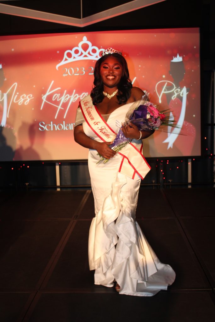 I entered the Miss Kappa Alpha Psi scholarship pageant and won 3 awards: Highest GPA, Fashionista, and Peoples Choice. I also came in 3rd place in the pageant and became Miss Krimson and Kreme. This experience was very gratifying. I worked very hard, I spent a lot of time practicing and writing speeches, and I even had my swimsuit custom-made.