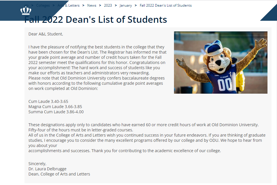 I have gotten Dean’s List 3 semesters in a row for having a GPA of 3.40 or higher each semester currently standing at a 3.48 overall.