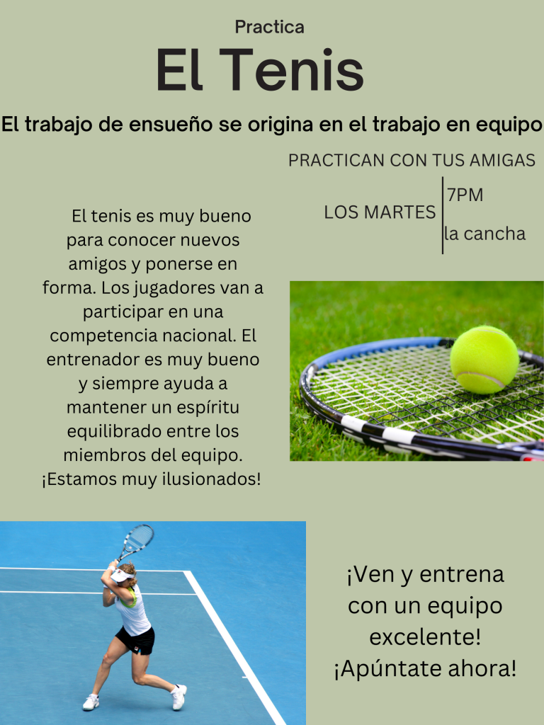 For this class I had to create flyers/ pamphlets for a sport and an illness. For the sports project i had to create a flyer that gives description of a tennis team tryouts. For the illness project I created a flyer about the flu with symptoms and recocmendations on how it should be treated.