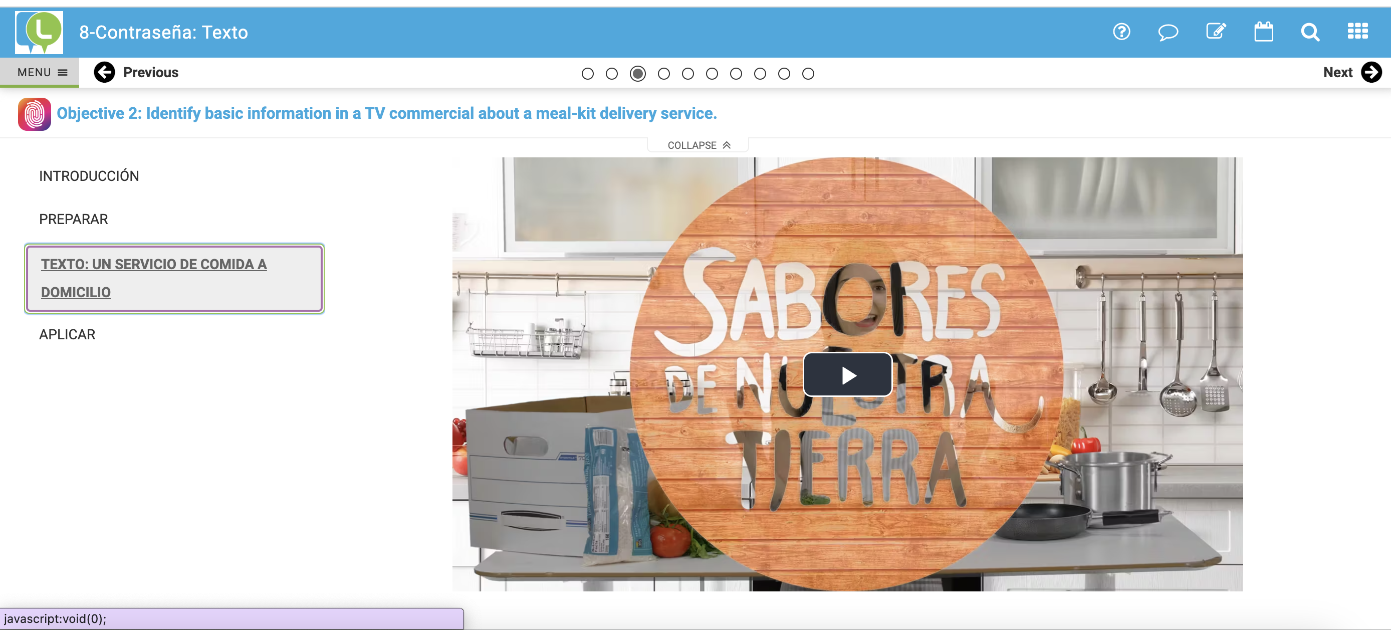 The video I remember was about a meal-kit delivery service. This video taught me how to talk about food and eating habits. It also talked about ingredients and meal preparation. The most interesting thing about this video was hearing how food is talked about in Spanish compared to english.