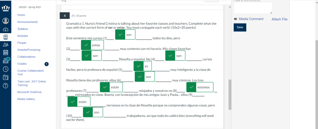 Some listening activities were both on canvas and on LingroLearning, where we had to listen to what was being said and either select the correct answer or type in the correct answer. Another activity was the speaking with a professor, were I had to listen to what the professor was saying and be able to understand it and answer back with the proper response.