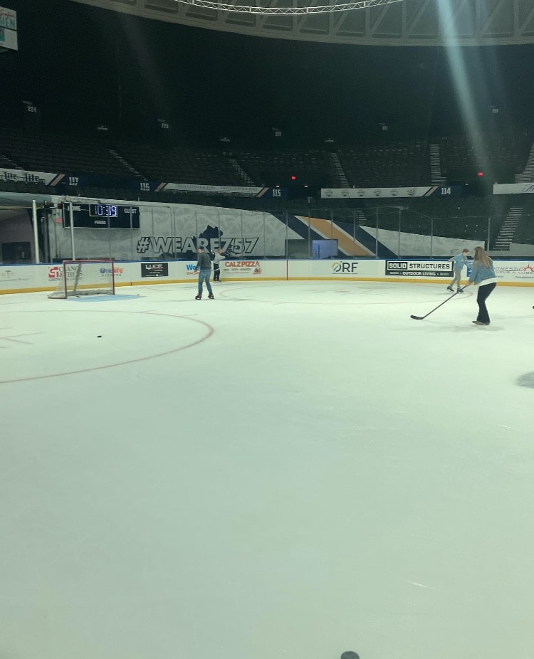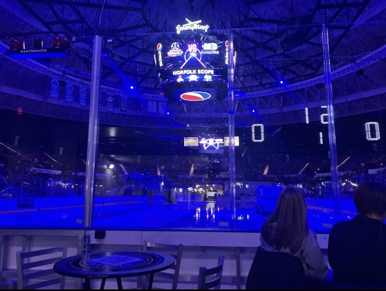The first picture on this social page was taken on the ice at the Norfolk Scope, where the Norfolk Admirals play. I intern there currently and have since last summer. One of the perks of this internship, apart from seeing professional hockey games, is we get to skate on the ice from time to time. This picture was taken from the first time we got to skate after the game and was an exciting experience.