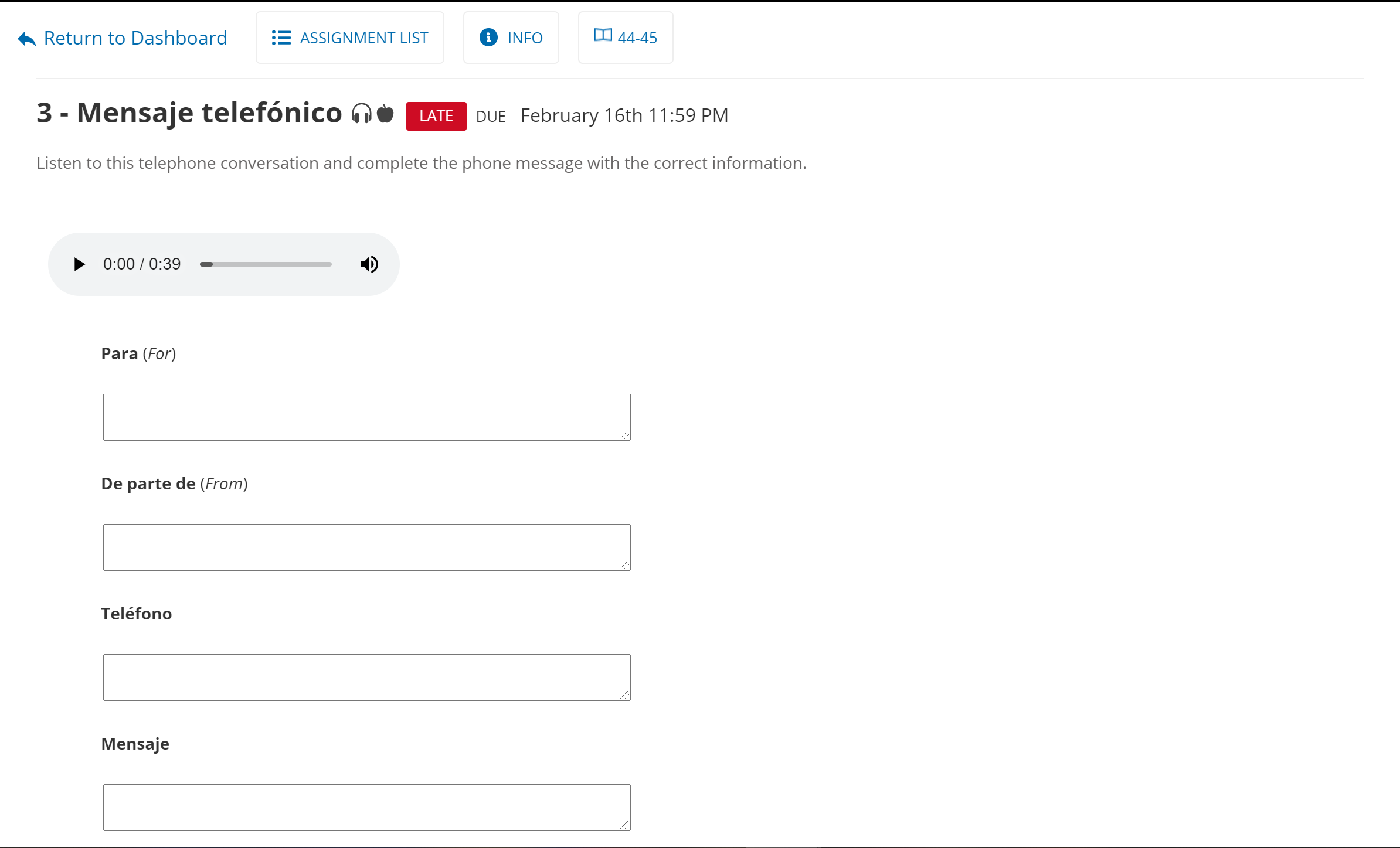 They’re not that many interpretive listening assignments. The one thing that I can think of is some of the homework I had to do. In our homework, we have certain assignments that we must listen to understand the question.